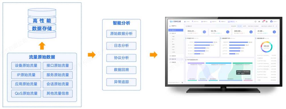 随着政企用户数字化转型和上云的加速,其业务、应用层出不穷,对网络带宽的需求越来越高。正常的业务需要良好的带宽环境保障机制,避免被一些与业务无关的杂事干扰,影响工作效率。方案对混合云路网络全局流量和带宽实时监控,将出入双方向流量情况可视化展现。基于海量流量数据的存储挖掘,统计分析流量峰值、谷值、流量趋势、设备流量等数据,为网络流量管理提供数据支撑。